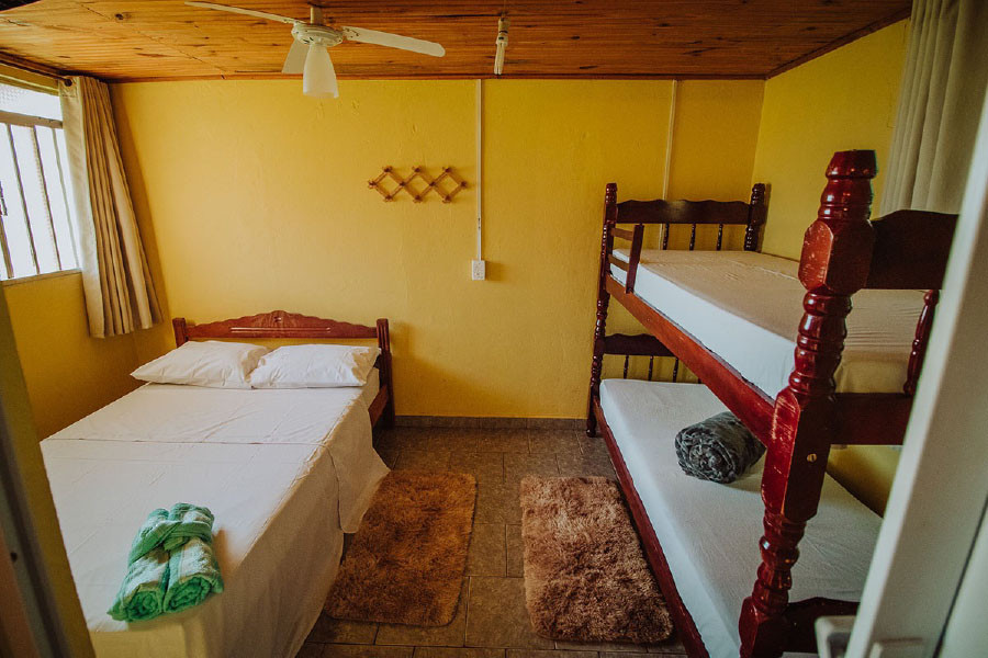 Conta com ar-condicionado quente/frio. /ventilador de teto/televisor/chuveiro aquecido a gás/Janelas teladas.