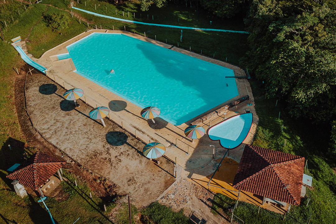 A água que abastece a piscina vem de uma mina localizada nas montanhas da própria fazenda. Por exigência dos órgãos de Vigilância Sanitária, esta água é filtrada e clorada.