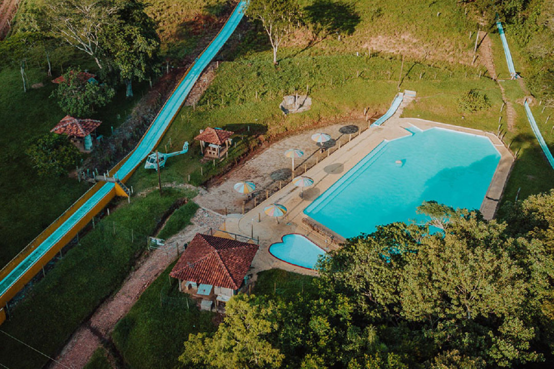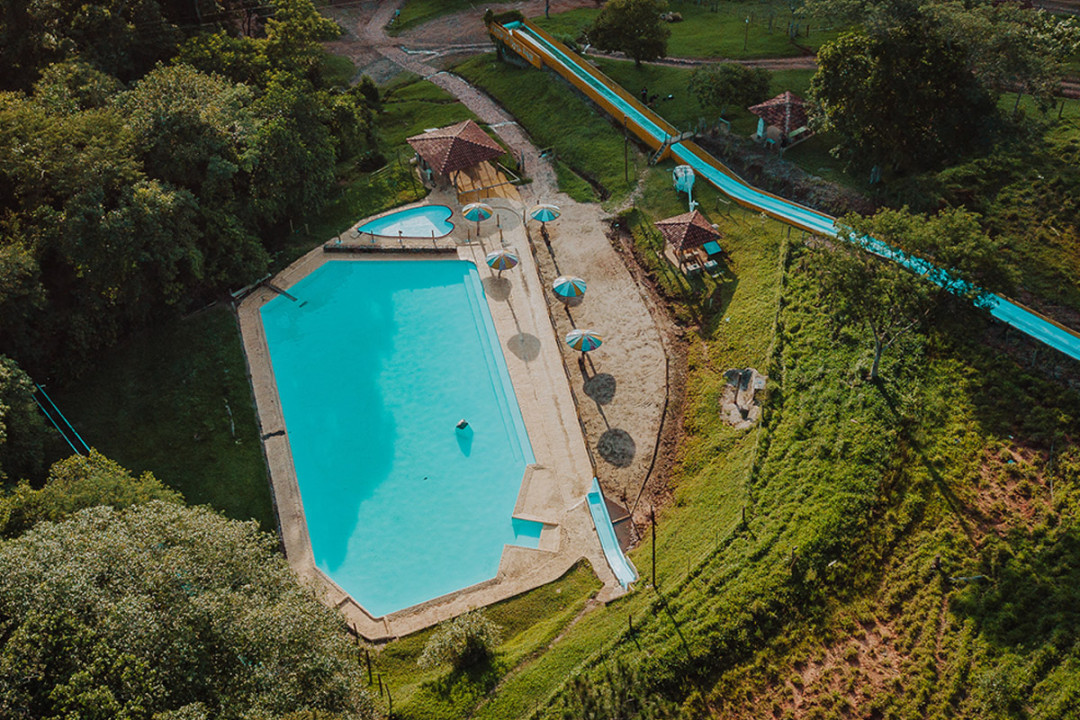 Uma piscina com capacidade para quatrocentos mil litros está entre as principais atrações do Hotel Fazenda Luar de Agosto.