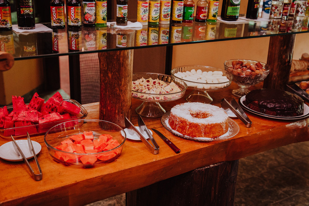 Alguns produtos que são servidos no restaurante são produzidos no próprio hotel, tais como: leite, queijo, carne de boi, frutas, verduras, mel, pães e doces ou adquiridos de vizinhos produtores e tudo fresquinho. Servimos também marmitex, um prato executivo que deve ser encomendado com antecedência no próprio restaurante.