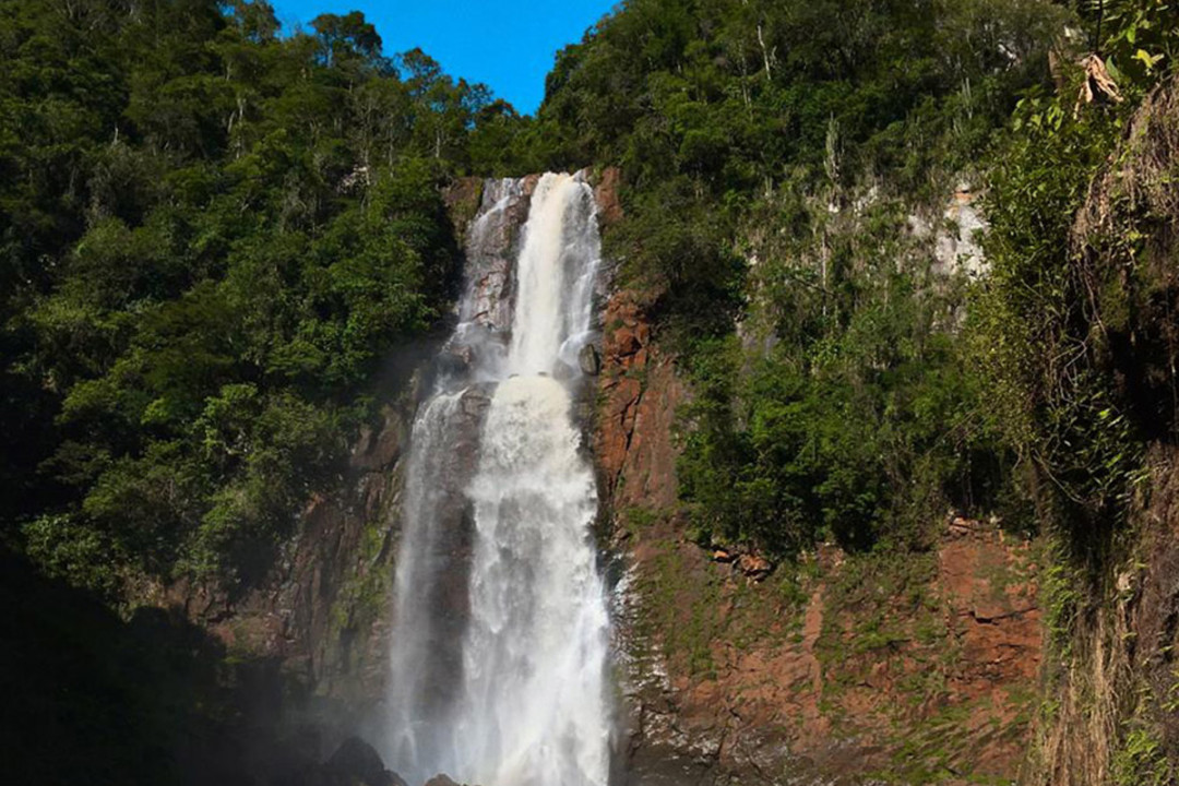 No final da trilha tem uma vista maravilhosa da cachoeira, bem próxima, que sente-se os respingos do Salto São Pedro de 125 metros na pele.
