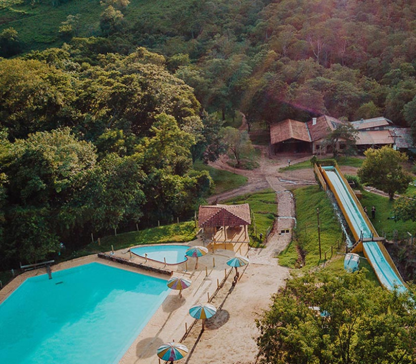 Cercada por belas montanhas e banhada pelo rio São Pedro, a fazenda é um pedaço do paraíso que fascina e atrai turistas apaixonados pela Natureza.